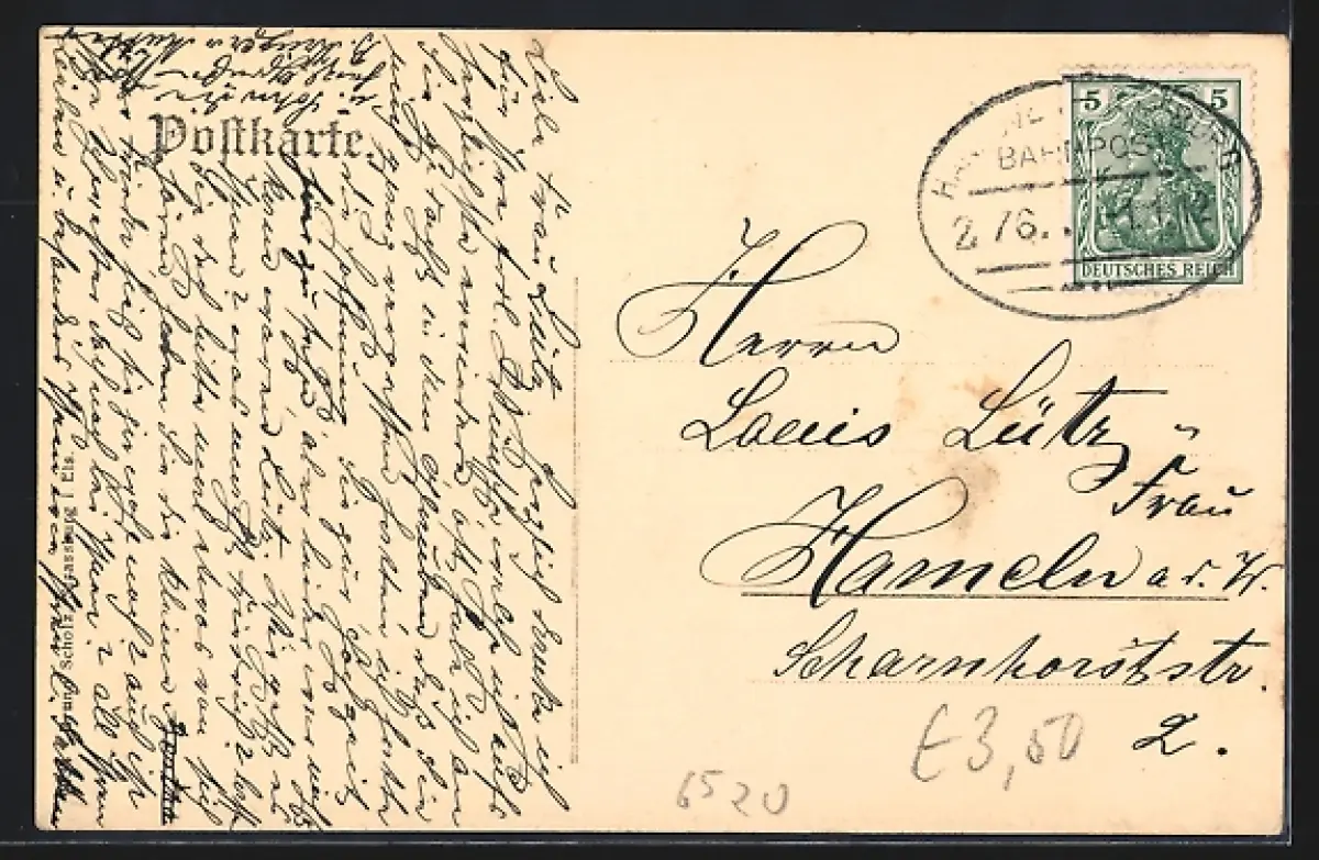 alte Ansichtskarte, gelaufen, Stempelspur, Bugspur unten mittig, guter Zustand
