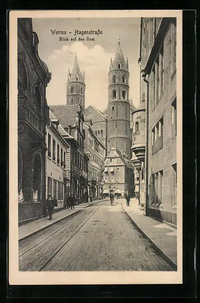AK Worms, Hagenstrasse, Blick auf den Dom