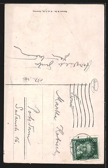 alte Ansichtskarte, gelaufen 1928, Bugspur oben li., Eckknick li. oben, guter Zustand