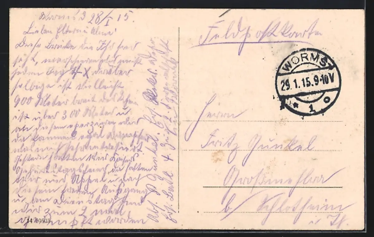 gelaufen 1915, Eckknick oben rechts, guter Zustand