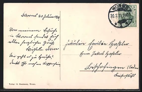 alte Ansichtskarte, gelaufen 1911, Stempelspur, guter Zustand