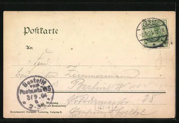 alte Ansichtskarte, gelaufen 1904, Stempelspur, guter Zustand