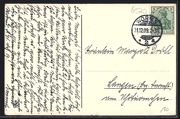 gelaufen 1909, Eckknicke re. unten u. li., guter Zustand