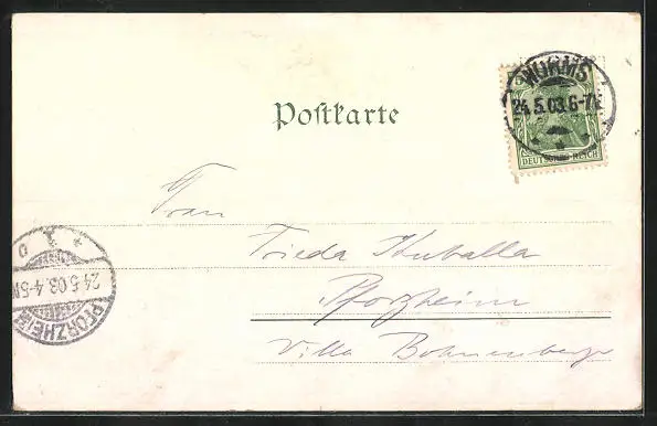 alte Ansichtskarte, gelaufen 1903, Eckknick unten rechts, guter Zustand