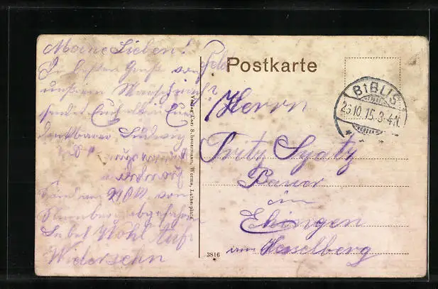 alte Ansichtskarte, gelaufen 1915 als Feldpost, Einriss unten li., guter Zustand