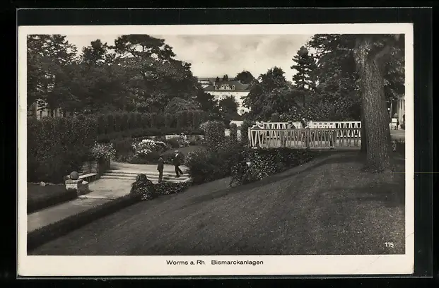 AK Worms a. Rh., Bismarckanlagen