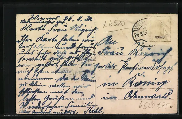 alte Ansichtskarte, gelaufen, Briefmarke entfernt, rückseitig Oberflächenschaden, guter Zustand