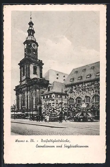 AK Worms a. Rh., Dreifaltigkeitskirche, Cornelianum und Siegfriedbrunnen