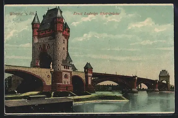 AK Worms a. Rh., Ernst Ludwigs Rheinbrücke
