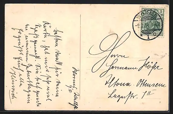 alte Ansichtskarte, gelaufen 1914, Eckknick re. oben, Abriebspuren oben mittig, guter Zustand