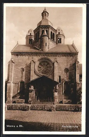 AK Worms a. Rh., Frontalansicht der Pauluskirche