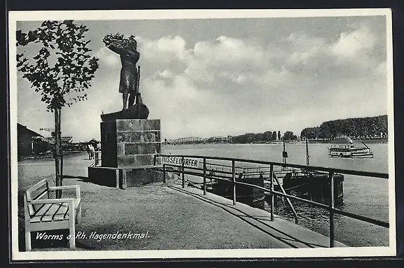 AK Worms a. Rh., Hagendenkmal
