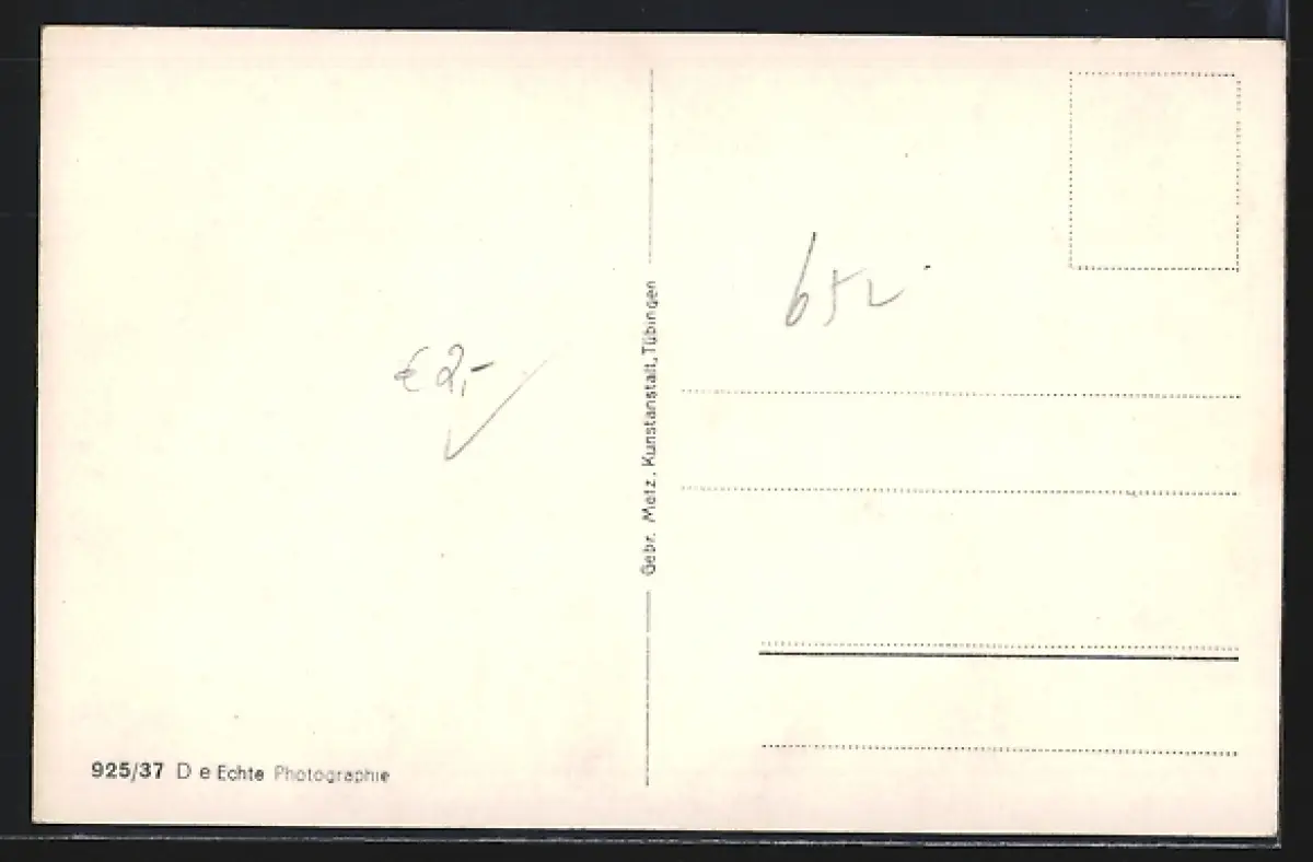 Personenbezogene Daten auf der Rückseite der Karte wurden durch blauen Textmarker unkenntlich gemacht. Die blauen Stellen sind auf die Vorderseite durchgeweicht und wirken sich negativ auf das Postkartenfoto aus