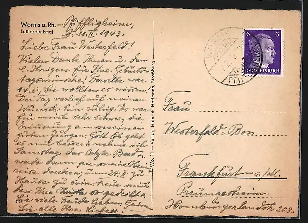 gelaufen 1943, Eckknick unten re., guter Zustand