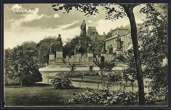 AK Worms a. Rh., Lutherplatz mit Denkmal