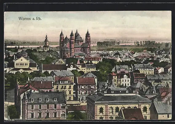 AK Worms a. Rh., Ortsansicht aus der Vogelschau