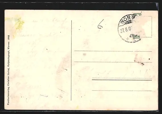 alte Ansichtskarte, gelaufen 1909, Briefmarke entfernt, guter Zustand