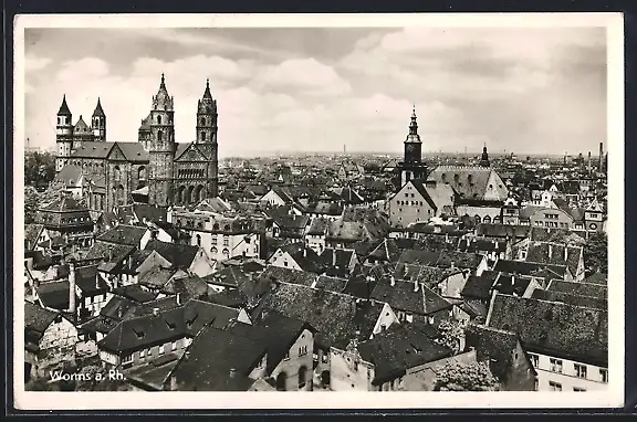 AK Worms a. Rh., Teilansicht mit Kirche