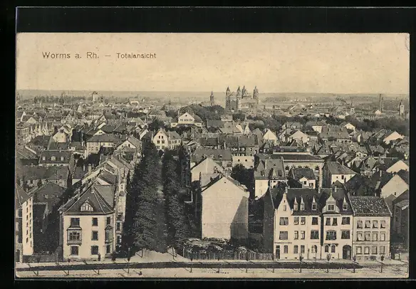 AK Worms a. Rh., Totalansicht aus der Vogelschau