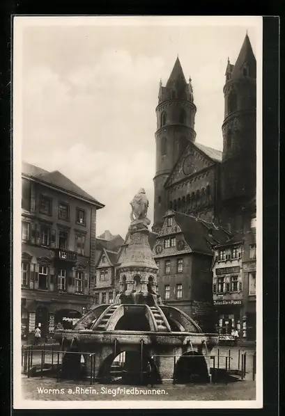 AK Worms a. Rhein, Partie am Siegfriedbrunnen