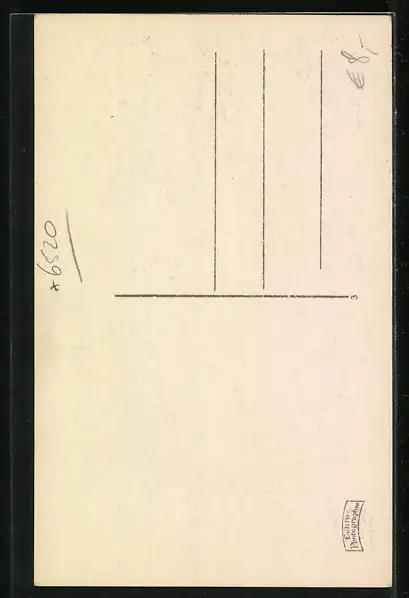 Personenbezogene Daten auf der Rückseite der Karte wurden durch blauen Textmarker unkenntlich gemacht. Die blauen Stellen sind auf die Vorderseite durchgeweicht und wirken sich negativ auf das Postkartenfoto aus