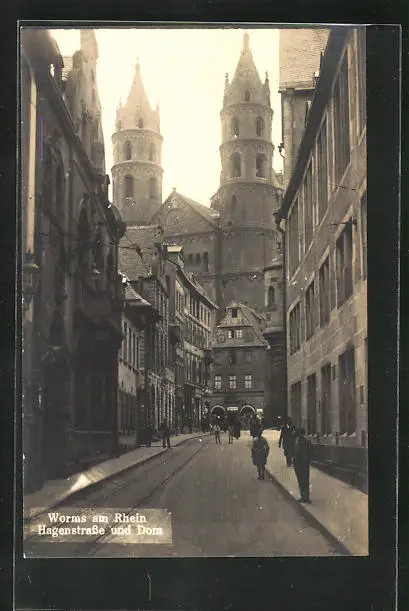 AK Worms am Rhein, Hagenstrasse und Dom