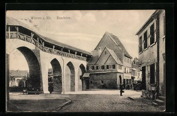 AK Worms am Rhein, Strassenpartie am Raschitor