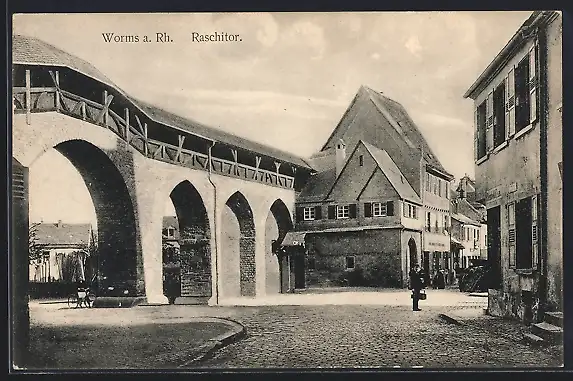 AK Worms am Rhein, Strassenpartie am Raschitor