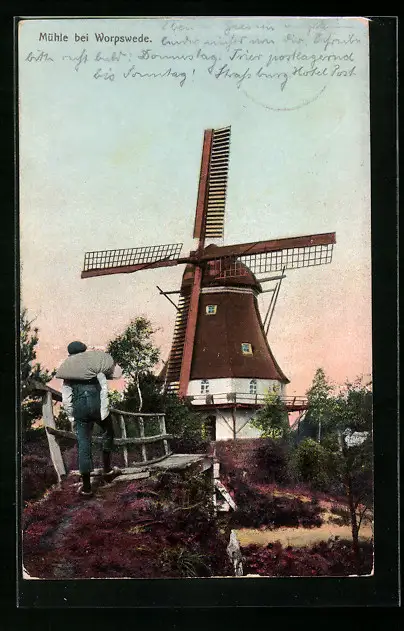 AK Worpswede, Ortspartie mit Windmühle