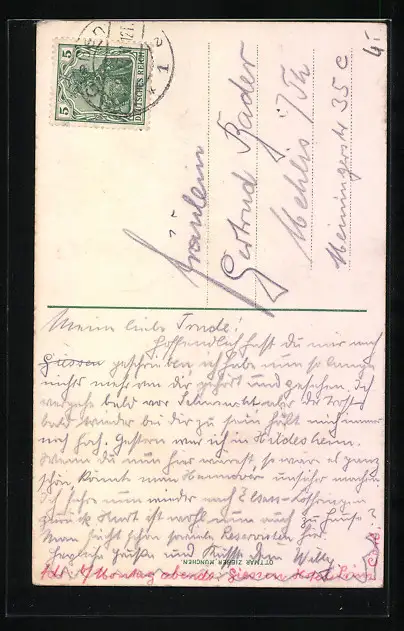 alte Ansichtskarte, gelaufen 1913, Abriebspur oben re., guter Zustand