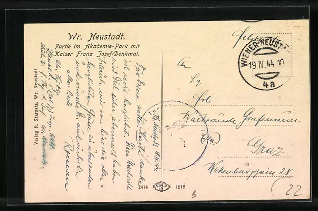 AK Wr. Neustadt, Akademie-Park mit Franz Josef-Denkmal