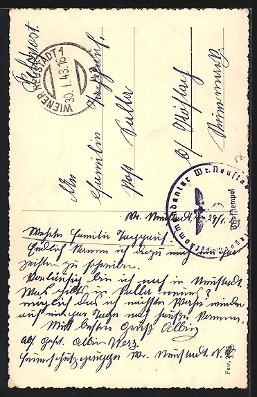 alte Ansichtskarte, gelaufen 1943, Eckknick re. oben, Bugspuren oben li. und unten mittig