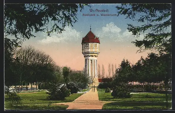 AK Wr.-Neustadt, Stadtpark und Wasserturm