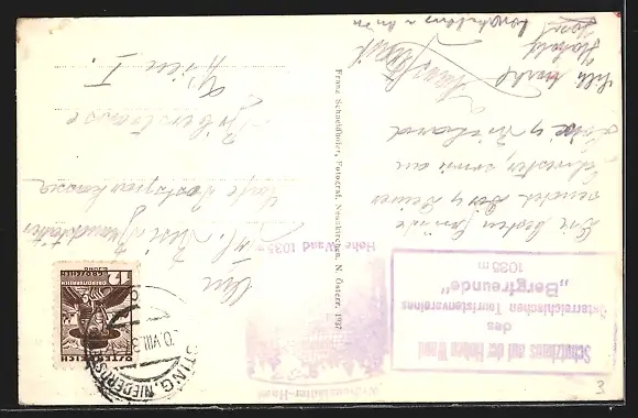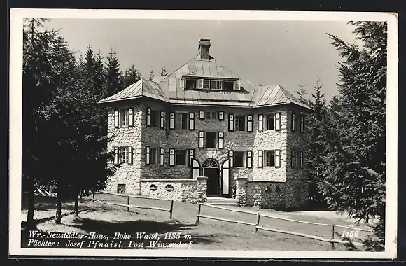 AK Wr.-Neustädter-Haus, Pächter Josef Pfnaisl, Hohe Wand