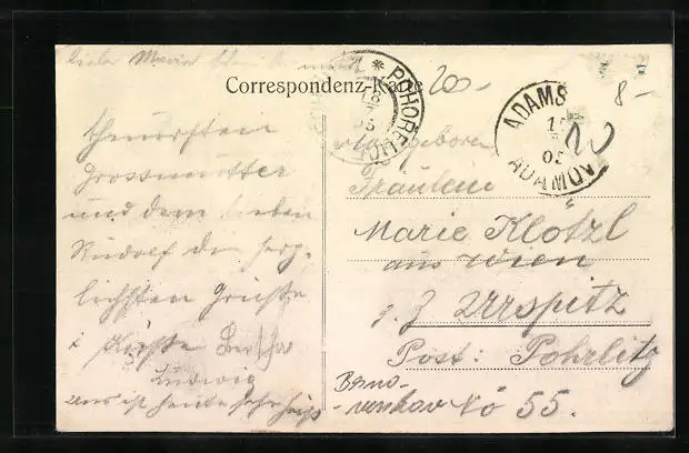 alte Ansichtskarte, gelaufen, Briefmarke entfernt, rückseitig Oberflächenschaden, guter Zustand