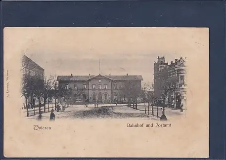 AK Wriezen Bahnhof und Postamt, gelaufen von 1899