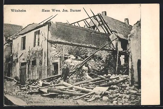 AK Wünheim, zerstörtes Haus der Wwe. Burner