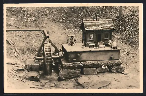 AK Wünschendorf / Elster, Märchenspiele im Kamnitzgrund, vom Wasser angetriebenes Miniaturkarussel