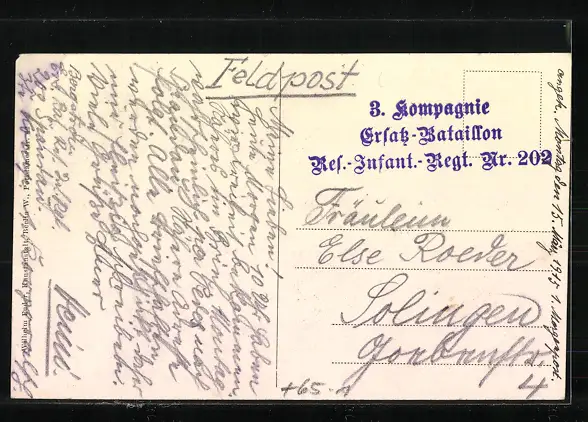 Personenbezogene Daten auf der Rückseite der Karte wurden durch blauen Textmarker unkenntlich gemacht. Die blauen Stellen sind auf die Vorderseite durchgeweicht und wirken sich negativ auf das Postkartenfoto aus