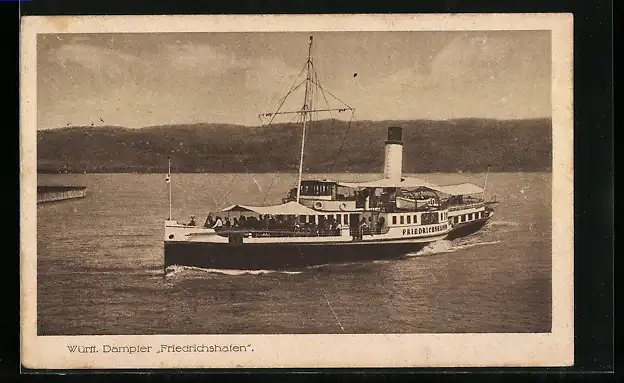 AK Württ. Dampfer Friedrichshafen in Fahrt auf dem Bodensee