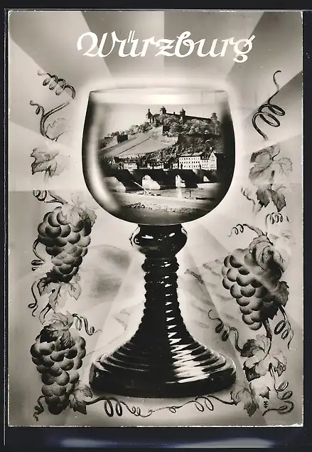 AK Würzburg, Brücke und Festung im Weinglad-Passepartout