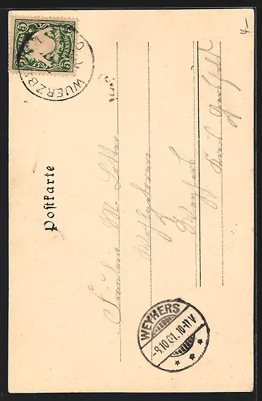 alte Ansichtskarte, gelaufen 1901, Stempelspur, guter Zustand