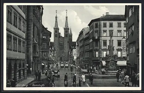 AK Würzburg, Domstrasse mit Blick zum Dom