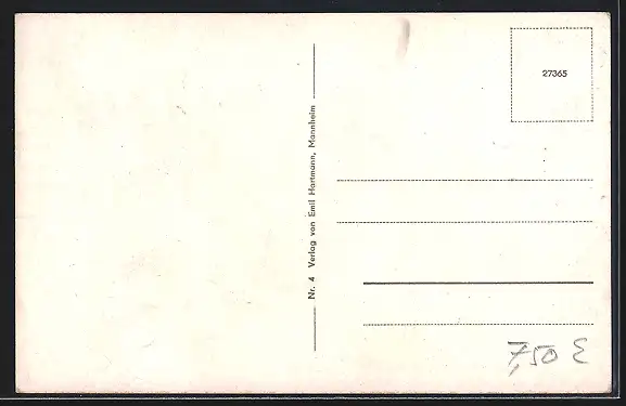 Personenbezogene Daten auf der Rückseite der Karte wurden durch blauen Textmarker unkenntlich gemacht. Die blauen Stellen sind auf die Vorderseite durchgeweicht und wirken sich negativ auf das Postkartenfoto aus