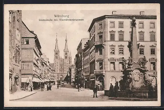 AK Würzburg, Domstrasse mit Vierröhrbrunnen