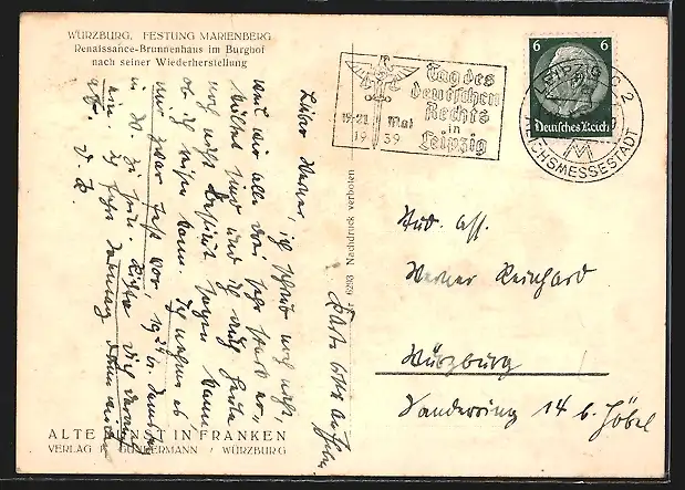 alte Ansichtskarte, gelaufen 1939, Bugspuren oberer Rand, guter Zustand