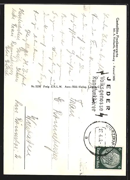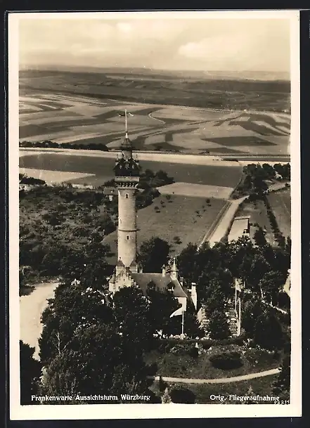 AK Würzburg, Fliegeraufnahme Frankenwarte Aussichtsturm