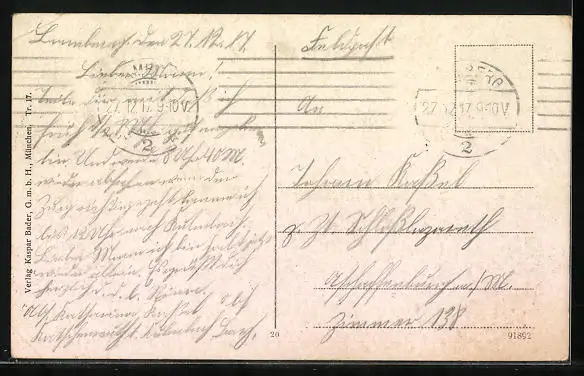 alte Ansichtskarte, gelaufen 1917 als Feldpost, Eckknicke unten, sonst guter Zustand