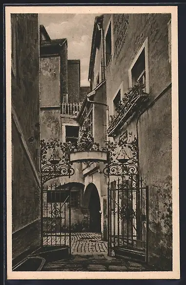AK Würzburg, Hahnenhöfchen mit gusseisernem Tor