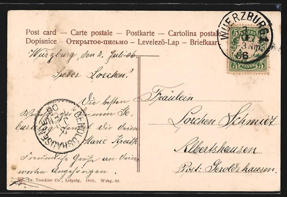 alte Ansichtskarte, gelaufen 1906, guter Zustand